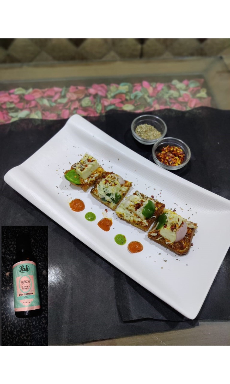Ingredients to make pizza sauce :- 1.Oil-4tbsp 2.Onion (chopped) -1 3.Tomato(chopped)-4 4.Garlic clove - 12 5.Red chilli flakes -1tbsp 6.Mixed Herbs - 1/2tbsp 7.Oregano-1tbsp 8.Red chilli powder -1tbsp 9.Fab pizza essence 10.Salt - 1tbsp 11.Tomato ketchup -3tbsp 12.Sugar -1/2tsp Ingredients to make pizza :- 1.Bread-2 2.Pizza sauce 3.Green chutney 4.Butter 5.Schezwan sauce 6.Mayonise 7.Tandoori masala 8.Cheese 9.Panner cubed 10.Onion cubed 11.Capsicum cubed 12.Chilli Flakes 13.Oregano |